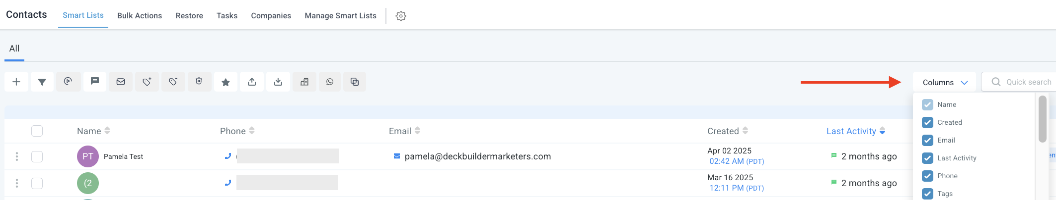 - Want to customize the view? Use the Columns dropdown at the top to show or hide the info you care about most.